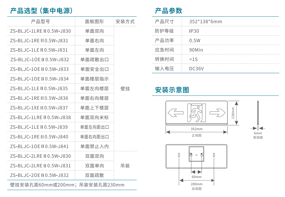 雙面單向消防應(yīng)急標(biāo)志燈 | ZS-BLJC-2LRE II 0.5W-J831 | 吊掛