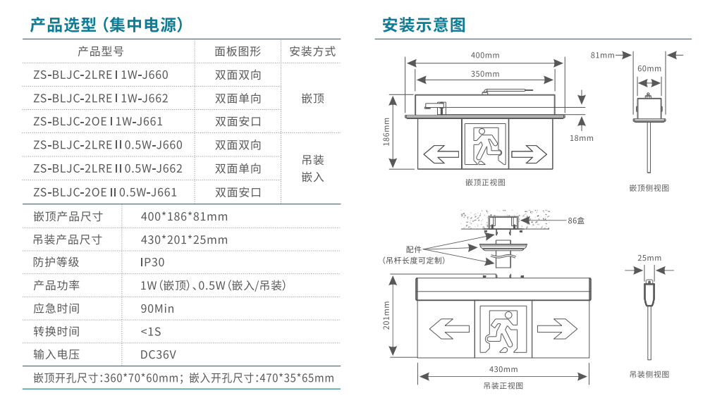 雙面雙向標志燈(水晶吊牌款)消防應急標志燈 | ZS-BLJC-2LREⅠ1W-J660 | 嵌裝