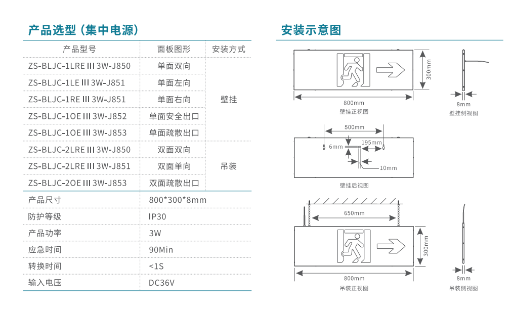 800大型款-單面安口消防應(yīng)急標志燈 | ZS-BLJC-1OE Ⅲ 3W-J852 | 壁掛