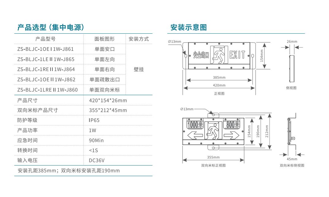 軌道交通-單面右向應急標志燈 | ZS-BLJC-1REⅡ1W-J864 | 壁掛